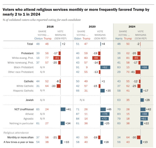 [26]Source: https://www.pewresearch.org/politics/2025/06/26/voting-patterns-in-the-2024-election/ [3] Note the Jewish vote for Trump in 2024 was only 35% compared to 63% for Harris.