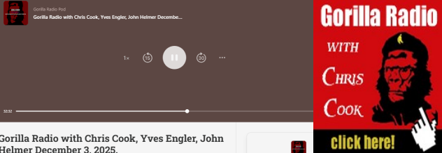 The new Gorilla Radio broadcast was recorded on Wednesday afternoon, British Columbia time. Yves Engler goes first; I start at Minute 32: