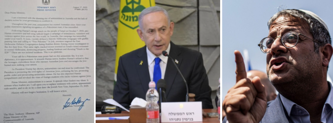 Israeli government statements claimed that Australian government recognition of the Palestinian state and countrywide protests against Israel’s genocide in Gaza were antisemitic incitement to the Bondi violence. Speaking in a video broadcast, Prime Minister Benjamin Netanyahu said: “On August 17, about four months ago, I sent Prime Minister Albanese of Australia a letter in which I gave him warning that the Australian government’s policy was promoting and encouraging antisemitism in Australia. Your call for a Palestinian state pours fuel on the antisemitic fire. It rewards Hamas terrorists. It emboldens those who menace Australian Jews and encourages the Jew hatred now stalking your streets. Antisemitism is a cancer. It spreads when leaders stay silent; it retreats when leaders act. I call upon you to replace weakness with action, appeasement with resolve. Instead, Prime Minister, you replaced weakness with weakness and appeasement with more appeasement. Your government did nothing to stop the spread of antisemitism in Australia. You did nothing to curb the cancer cells that were growing inside your country. You took no action. You let the disease spread and the result is the horrific attacks on Jews we saw today.”