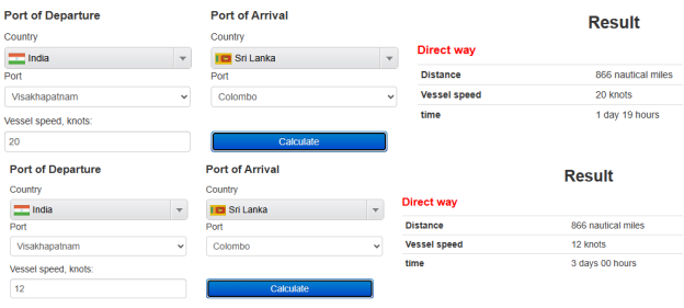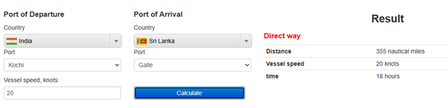 The sea distance between Kochi and Tuticorin (Thoothukudi) is 172.3 nm – that is half the distance for the Dena to have reached Galle; at 20 knots, 8 hours 39 minutes.