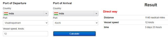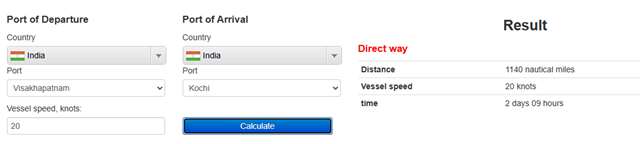 If the Dena had taken the westward course through the Palk Strait, between the Indian and Sri Lankan coasts, then from Visakhapatnam to Kochi by sailing at 20 knots/hour, the sailing time for the Dena should have been a little more than 2 days.